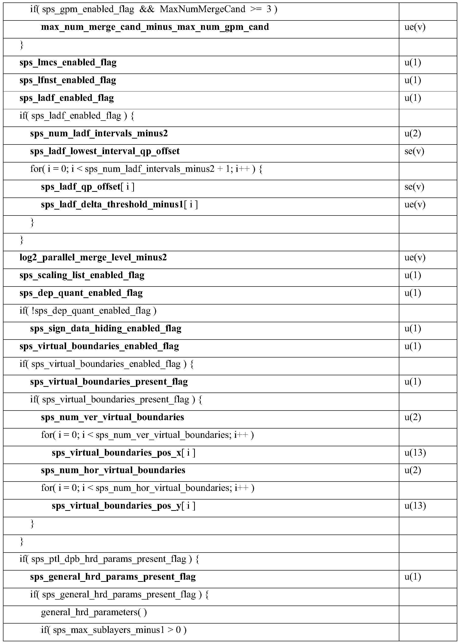 - the conversion conforms to a rule specifying that a syntax element in a sequence parameter set indicating a number of sub-pictures in the video picture is omitted in case a maximum picture width and a maximum picture height are equal to or smaller than a dimension of a coding tree block.