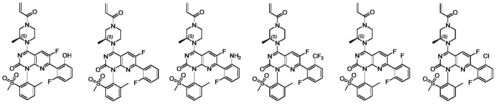 - YJVNASIVAJJZEL-KRWDZBQOSA-N C[C@@H](CN(CC1)C(C=C)=O)N1C(c1cc(F)c(-c(c(O)ccc2)c2F)nc1N1c(c(C2CC2)ccc2)c2S(C)(=O)=O)=NC1=O Chemical compound C[C@@H](CN(CC1)C(C=C)=O)N1C(c1cc(F)c(-c(c(O)ccc2)c2F)nc1N1c(c(C2CC2)ccc2)c2S(C)(=O)=O)=NC1=O YJVNASIVAJJZEL-KRWDZBQOSA-N 0.000 description 1