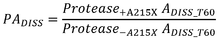 • ADISS = The dissolved fraction of protease in the diluted fermentation broth in percent: