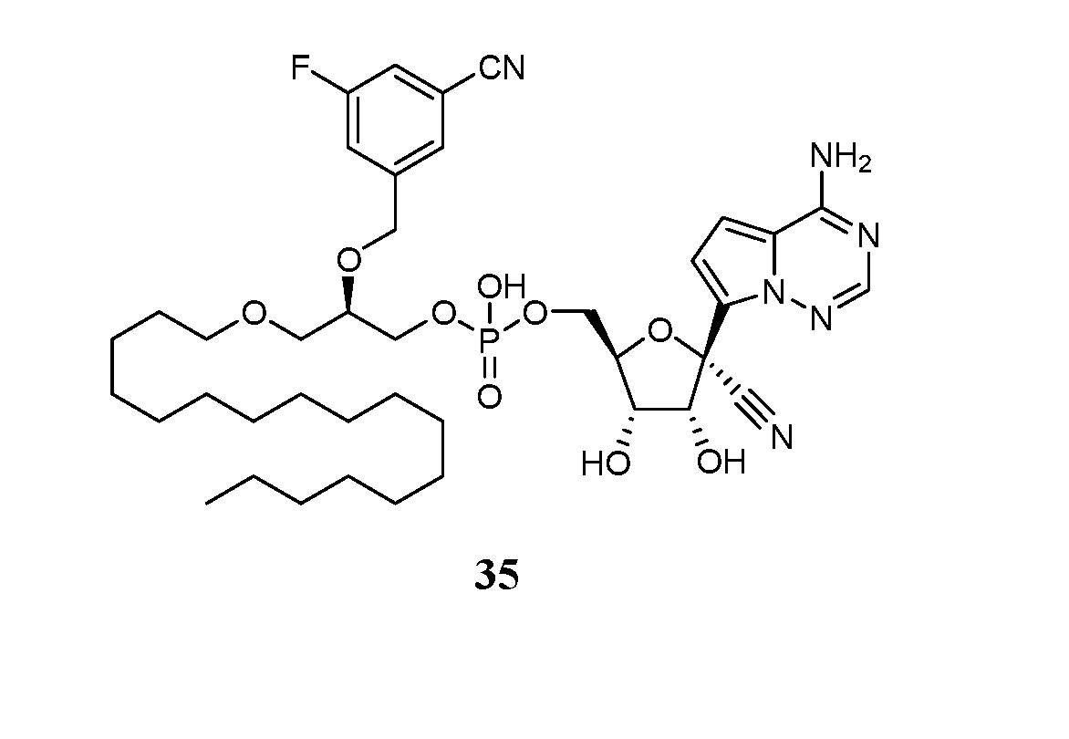 - CAKQQWNTMSDZQR-NEDVMLRLSA-N CCCCCCCCCCCCCCCCCCOC[C@H](COP(O)(OC[C@H]([C@H]([C@H]1O)O)O[C@]1(c1ccc2[n]1ncnc2N)C#N)=O)Oc(cc1)ncc1OC Chemical compound CCCCCCCCCCCCCCCCCCOC[C@H](COP(O)(OC[C@H]([C@H]([C@H]1O)O)O[C@]1(c1ccc2[n]1ncnc2N)C#N)=O)Oc(cc1)ncc1OC CAKQQWNTMSDZQR-NEDVMLRLSA-N 0.000 description 1