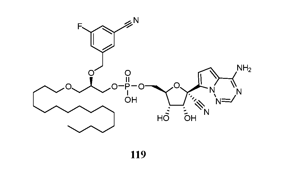 - HUPBGMIMXDELTG-JDTTTWTFSA-N CCCCCCCCCCCCCCCCCCOC[C@H](COP(O)(O[C@@H](C)C([C@H]([C@H]1O)O)O[C@]1(c1ccc2[n]1ncnc2N)C#N)=O)OCc(cc1)ncc1C#N Chemical compound CCCCCCCCCCCCCCCCCCOC[C@H](COP(O)(O[C@@H](C)C([C@H]([C@H]1O)O)O[C@]1(c1ccc2[n]1ncnc2N)C#N)=O)OCc(cc1)ncc1C#N HUPBGMIMXDELTG-JDTTTWTFSA-N 0.000 description 1