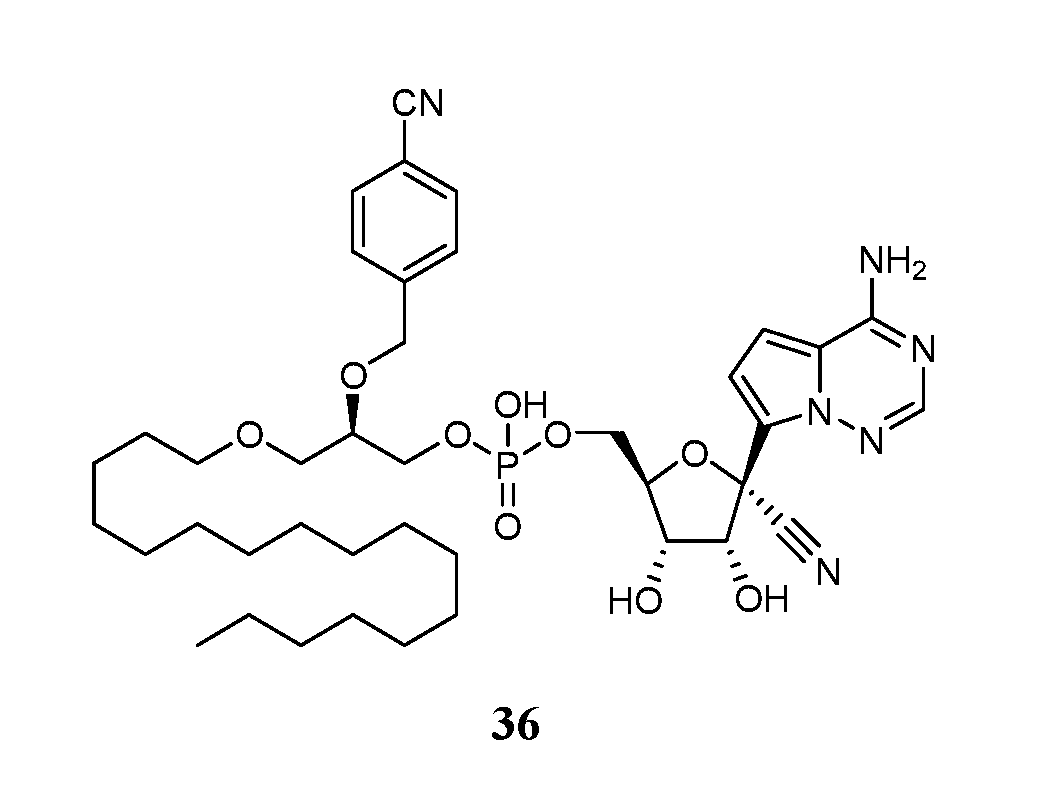 - MZELOJDAAYKUHU-HSVSSZEHSA-N CCCCCCCCCCCCCCCCCCOC[C@H](COP(O)(O[C@@H](C)C([C@H]([C@H]1O)O)O[C@]1(c1ccc2[n]1ncnc2N)C#N)=O)OCc1cnc(C(F)(F)F)nc1 Chemical compound CCCCCCCCCCCCCCCCCCOC[C@H](COP(O)(O[C@@H](C)C([C@H]([C@H]1O)O)O[C@]1(c1ccc2[n]1ncnc2N)C#N)=O)OCc1cnc(C(F)(F)F)nc1 MZELOJDAAYKUHU-HSVSSZEHSA-N 0.000 description 1