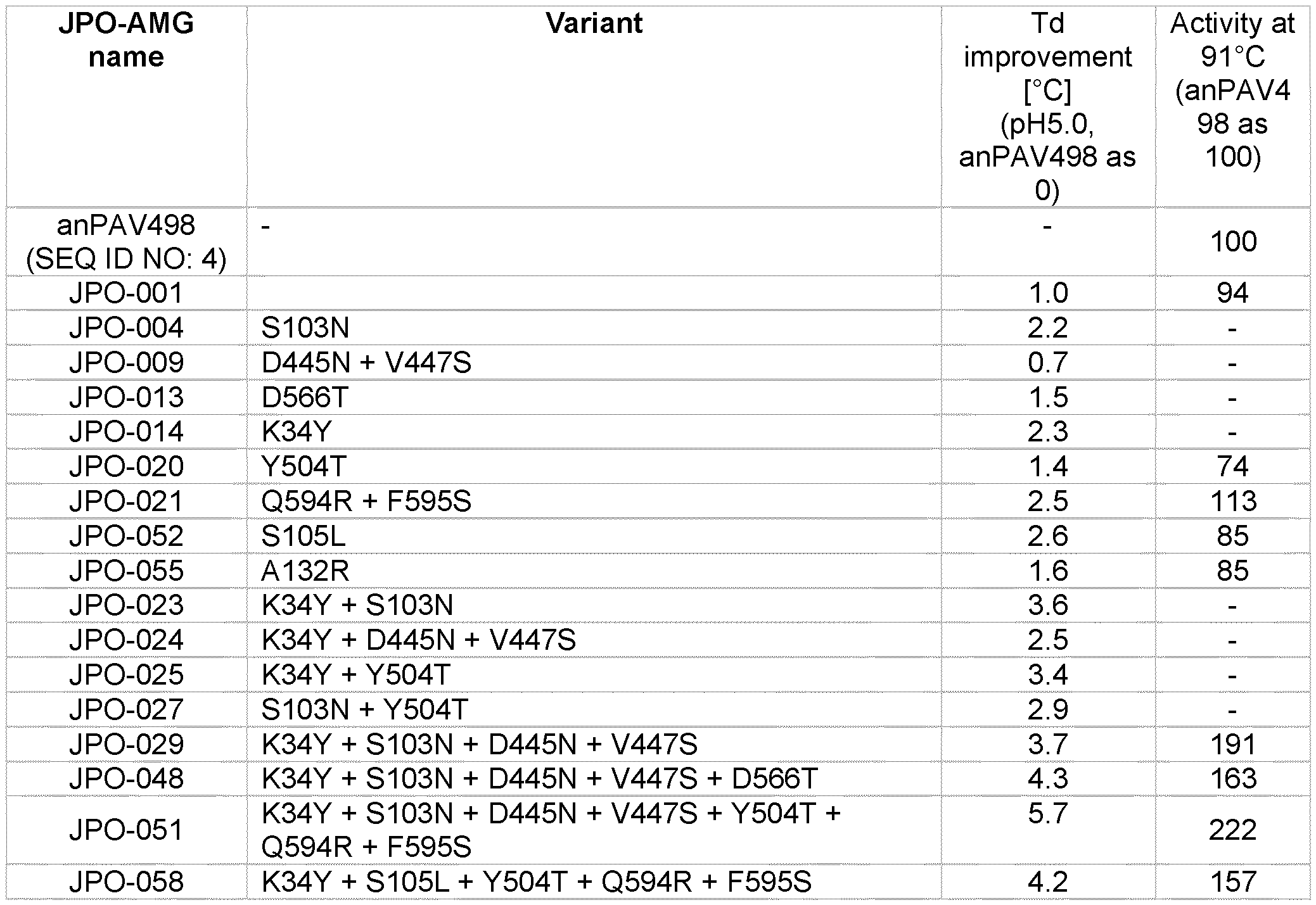 - PoAMG variant denoted ‘AMG anPAV498’ of SEQ ID NO:4;
