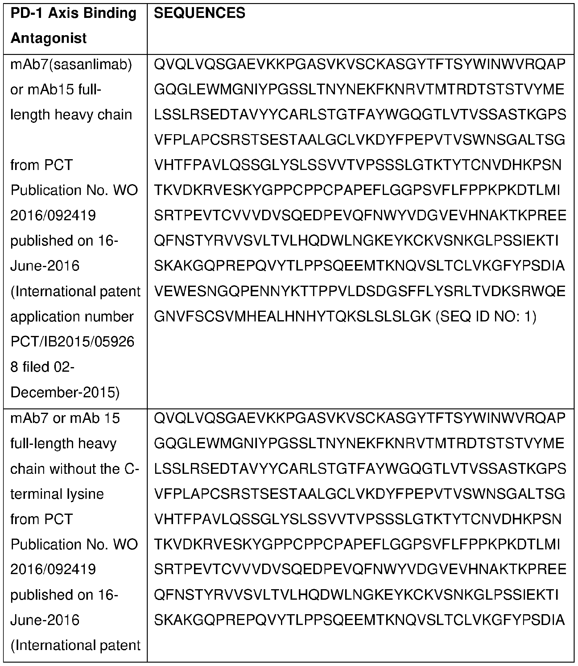 - PD-1 axis binding antagonists including the anti-PD-1 antibodies nivolumab (Opdivo), and pembrolizumab (Keytruda) were approved by the U.S. Food and Drug Administration (FDA) for the treatment of oncology indications in recent years.