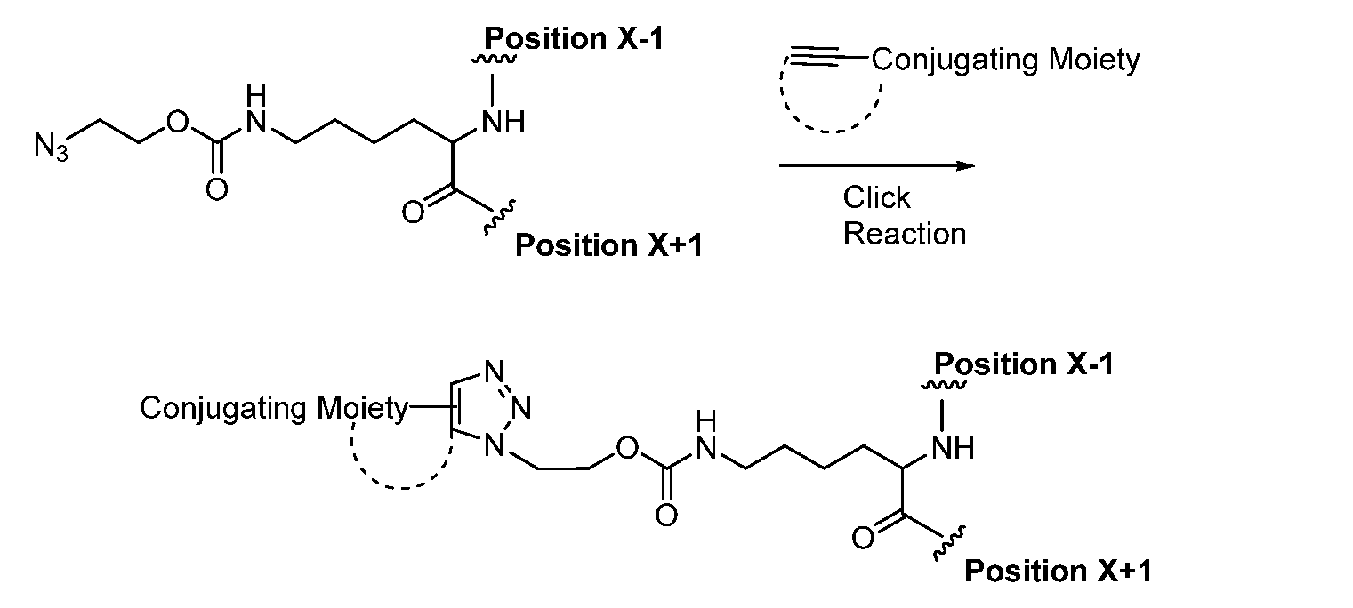 The AzK-containing protein was then allowed to react under click chemistry conditions with DBCO comprising a methoxy, linear PEG group having an average molecular weight of 30kDa, followed by purification and formulation employing standard procedures.