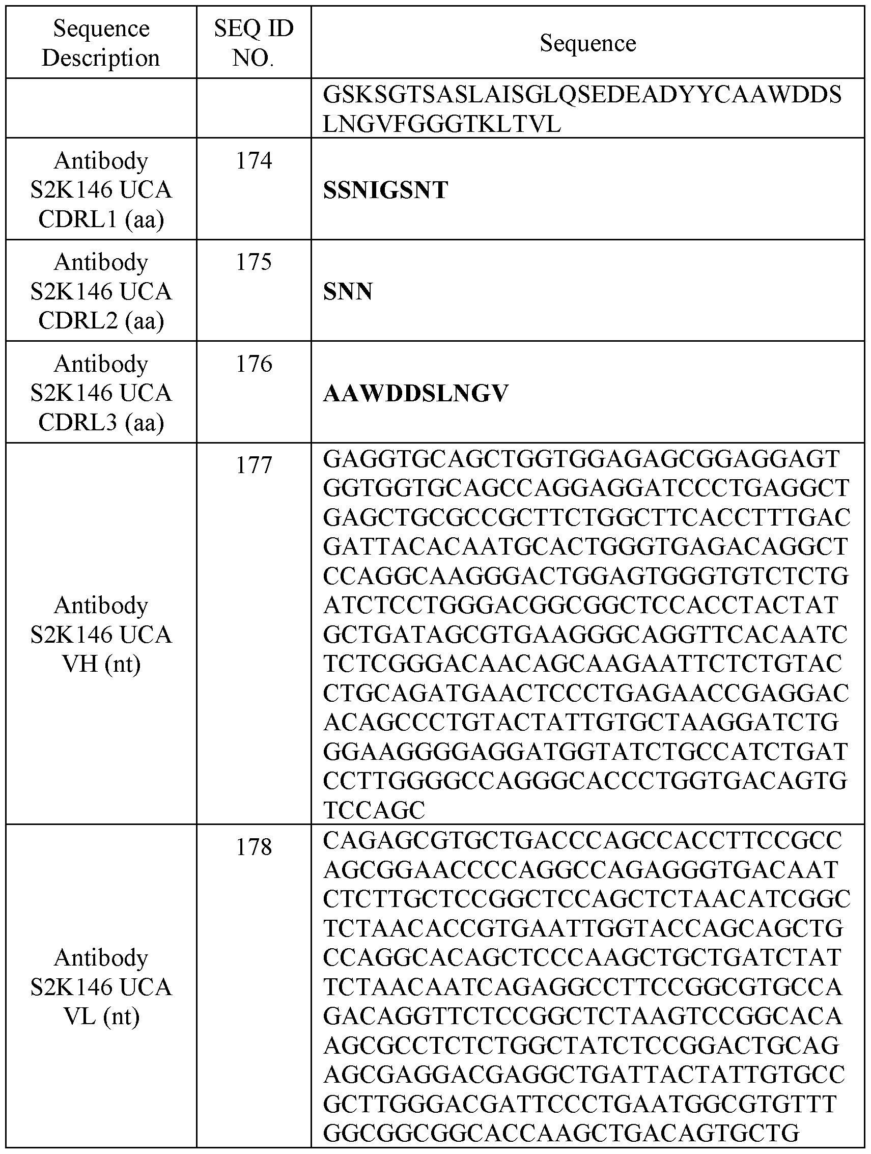 - Figure 9 shows ELISA binding by wild type antibody S2K146 (left) and antibody S2K146 UCA (the Unmutated Common Ancestor of Antibody S2K146) (right) against SARS- CoV, SARS-CoV-2, WIV-1, RatG13, PangGD (PG-GD), and PangGX (PG-GX) RBDs.