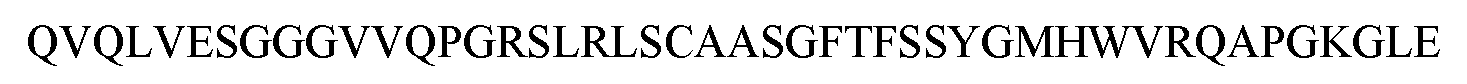 - an HCDR1 comprising an amino acid sequence of GFTFSNYG (SEQ ID NO: 45), an HCDR2 comprising an amino acid sequence of ISYDGSDK (SEQ ID NO: 25), and HCDR3 comprising an amino acid sequence of ARDSGRYFFDY (SEQ ID NO:46); and an LCDR1 comprising an amino acid sequence of QSVSSRS (SEQ ID NO:47), an LCDR2 comprising an amino acid sequence of GPS (SEQ ID NO: 48), an LCDR3 comprising an amino acid sequence of HQDYNLPLT (SEQ ID NO:49); or