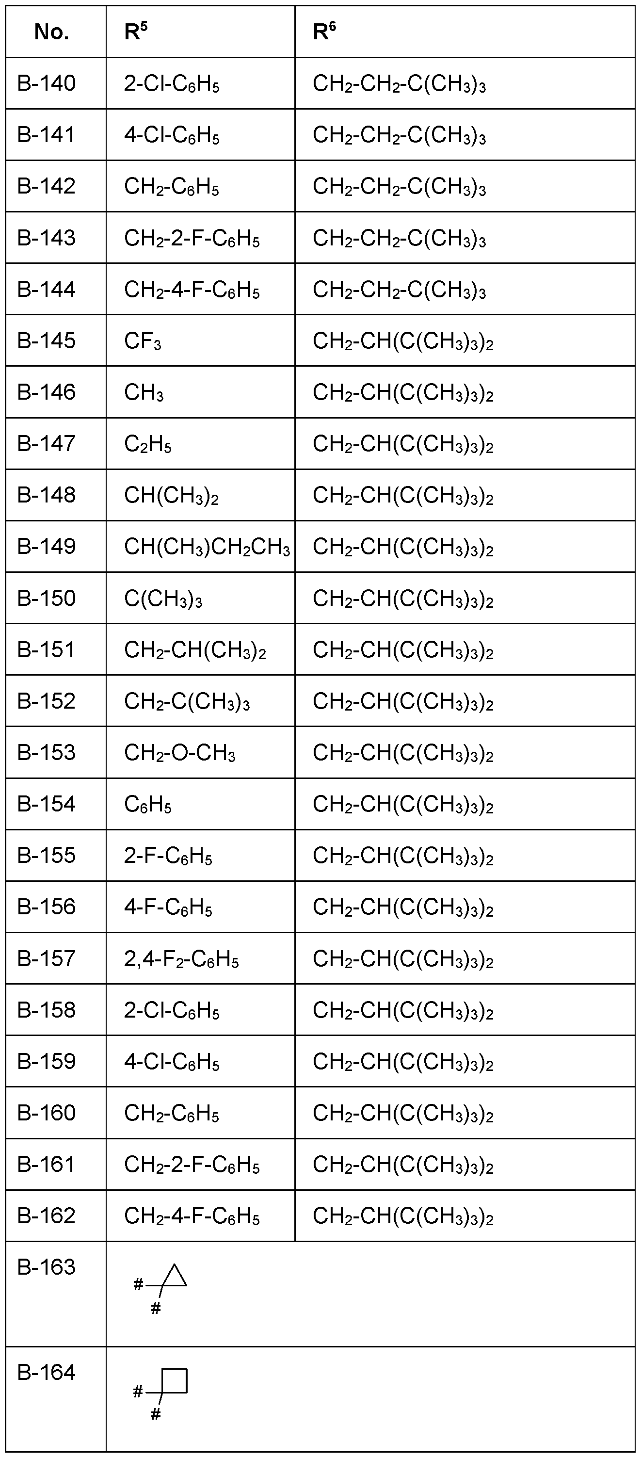 - R 5 are in each case independently selected from H, F, CN, CrC 6 -alkyl, CrC 6 -halogenalkyl, C2-C6-alkenyl, C2-C6-halogenalkenyl, C2-C6-alkynyl, C2-C6-halogenalkynyl, phenyl, benzyl, wherein phenyl and benzyl moieties of R 5 are unsubstituted or substituted by one to three groups R 5a , which independently of one another are selected from: halogen, CN, CrC 6 -alkyl, CrC 6 -halogenalkyl, 0-CrC 6 -alkyl;