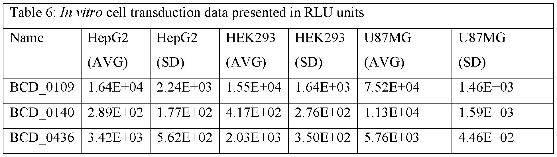 - the AAV clade member comprises a VP3 amino acid sequence that is the VP3 amino acid sequence of an amino acid sequence set forth in Table 9 which is identified by a “BCD ” prefix. In some embodiments, the AAV clade member comprises a VP1 amino acid sequence of a VP1 amino acid sequence set forth in Table 9 which is identified by a “BCD ” prefix. In specific embodiments, the VP1, VP2, or VP3 amino acid sequence of the AAV clade member comprises one or more of the amino acid modifications listed in Table 2. In specific embodiments, the one or more of the amino acid modifications of the VP1, VP2, or VP3 amino acid sequence of the AAV clade member are limited to the ones listed in Table 2.
