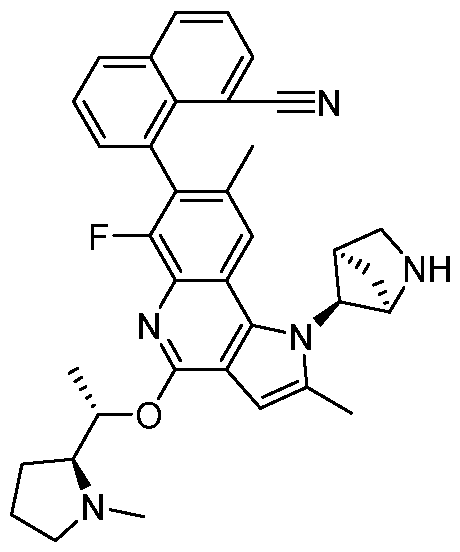 Example 73: methyl (2R)-2-(1-((1R,4R,5S)-2-Azabicyclo[2.1.1]hexan-5-yl)-8-(2- cyanoethyl)-7-(2,3-dichlorophenyl)-4-(4-((dimethylamino)methyl)-2,3-difluorophenyl)-6- fluoro-1H-pyrrolo[3,2-c]quinolin-2-yl)pyrrolidine-1 -carboxylate