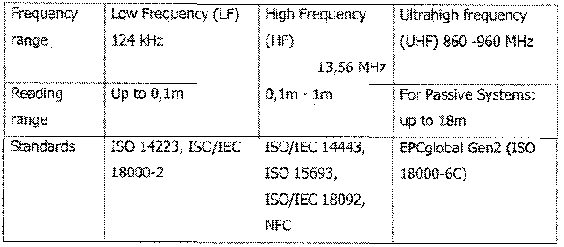 - RFID systems are essentially differentiated according to the operating frequency of the reader, the underlying physical coupling process and the communication range of the system.