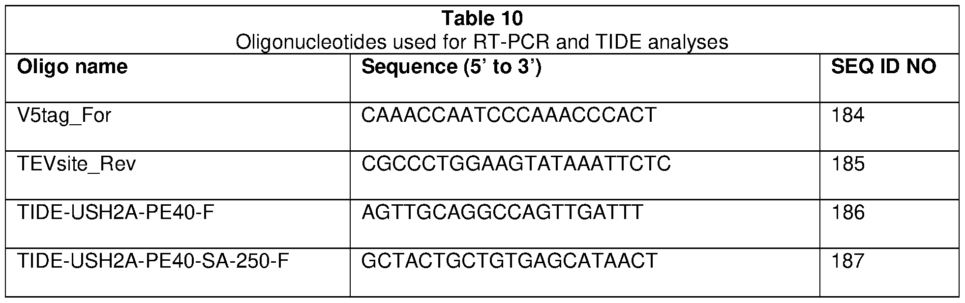 [0049] A target sequence is considered upstream of pseudoexon 40 (PE40) when the target sequence is partially or fully upstream of the USH2A genomic sequence corresponding to PE40. A target sequence is considered downstream of PE40 when the target sequence is partially or fully downstream of the USH2A genomic sequence corresponding to PE40. It should be understood that upstream and downstream are with reference to the + strand, irrespective of whether the target sequence is found in the + or - strand of genomic DNA.
