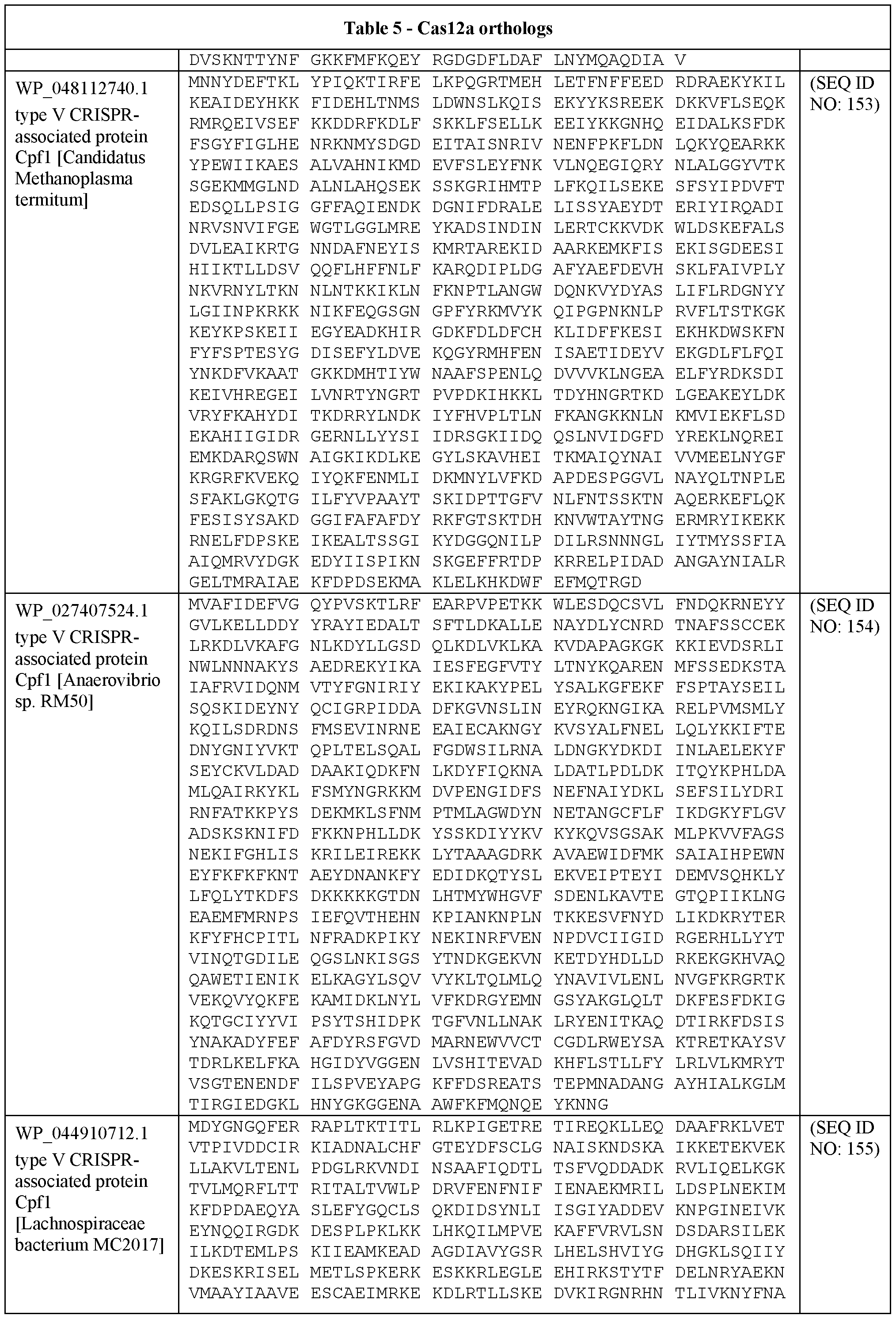 [0234] AAV has a packaging limit of 4.5 or 4.75 Kb. This means that nucleic acid-targeting effector protein (such as a Type V protein such as C2cl or C2c3) as well as a promoter and transcription terminator have to be all fit into the same viral vector. Therefore embodiments of the invention include utilizing homologs of nucleic acid-targeting effector protein (such as a Type V protein such as C2cl or C2c3) that are shorter.