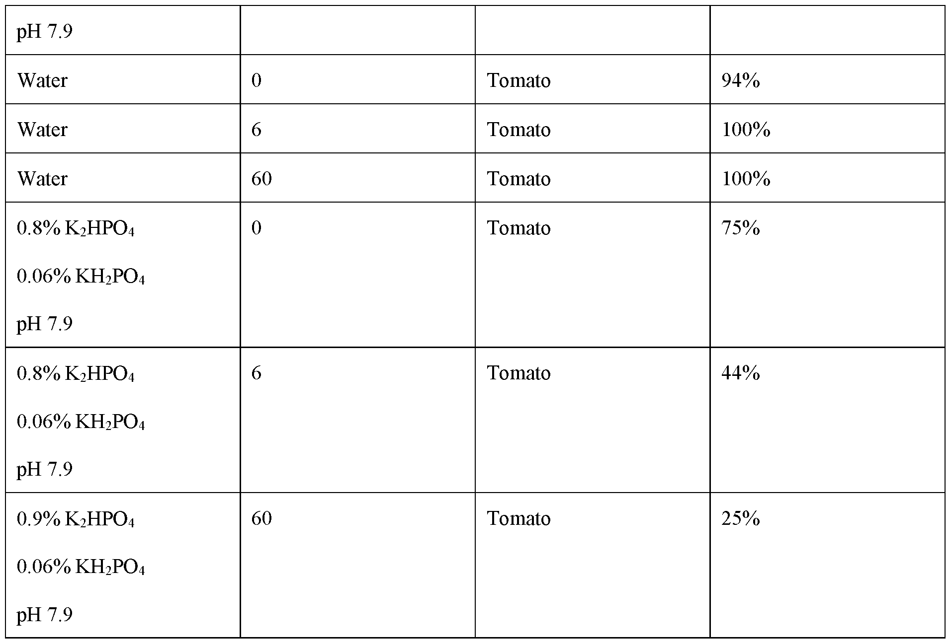 - Exemplary enzyme stability characteristics include, but are not limited to, maintenance of enzymatic activity after being applied to a plant or plant part and/or stored for a defined period of time and the ability to cause a desired effect (e.g., reduced phytopathogenicity of a target pest) after being applied to a plant or plant part and/or stored for a defined period of time.