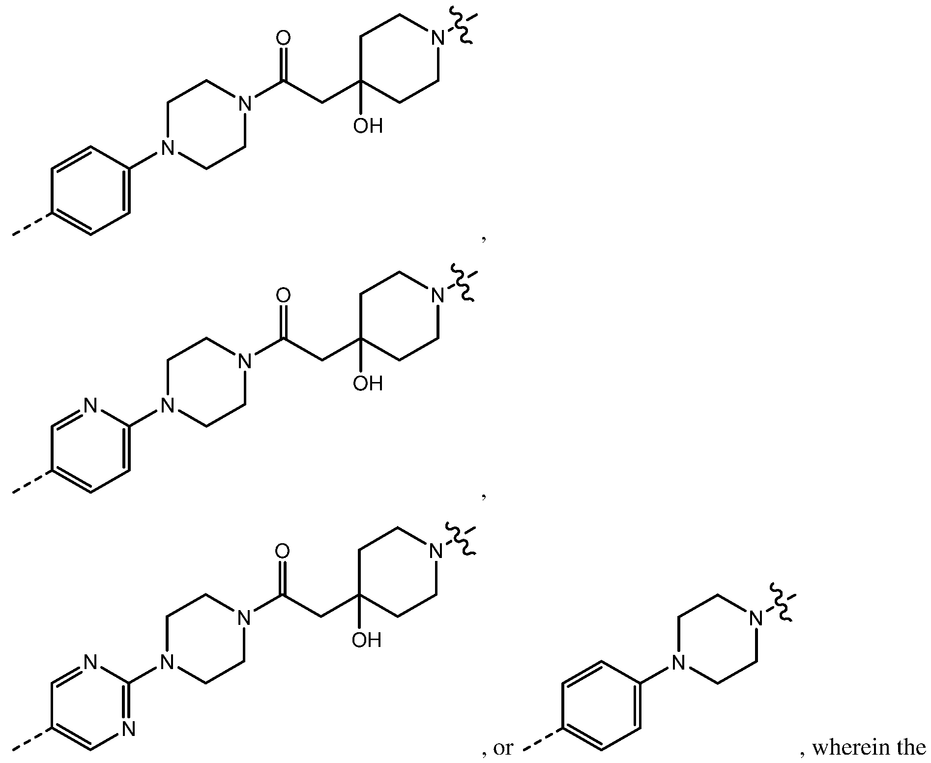 wherein: W is CH
