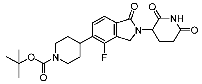 [00549] To a solution of tert-butyl 2-(piperidin-4-yloxy)-7-azaspiro[3.5]nonane-7- carboxylate (700 mg, 2 mmol) and 3-(5-bromo-1-oxo-3H-isoindol-2-yl)piperidine-2,6-dione (697 mg, 2 mmol) in N,N-dimethylformamide (20 mL) was added cesium carbonate (2812 mg, 9 mmol) and dichloro[1,3-bis(2,6-di-3-pentylphenyl)imidazol-2-ylidene](2- methylpyridyl)palladium(II) (91 mg, 0.1 mmol). The resulting mixture was stirred at 90 °C for 12 h under nitrogen atmosphere. The mixture was cooled to room temperature, diluted with water (10 mL) and extracted with ethyl acetate (2 x 100 mL). The combined organic layers were washed with brine (2 x 20 mL), dried over anhydrous sodium sulfate, filtered, and concentrated. The residue was purified by silica gel column chromatography (dichloromethane/methanol = 10:1) to afford tert-butyl 2-({1-[2-(2,6-dioxopiperidin-3-yl)-1- oxo-3H-isoindol-5-yl]piperidin-4-yl}oxy)-7-azaspiro[3.5]nonane-7-carboxylate (612 mg, 67%) as a white solid.