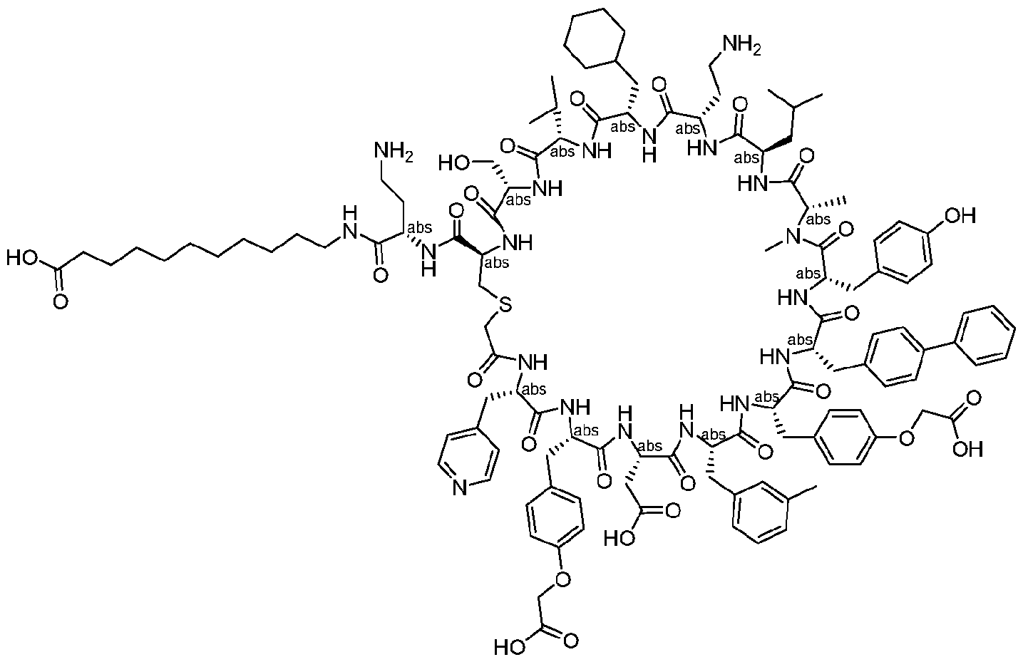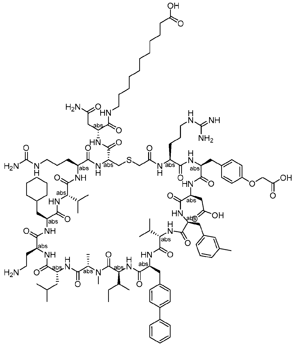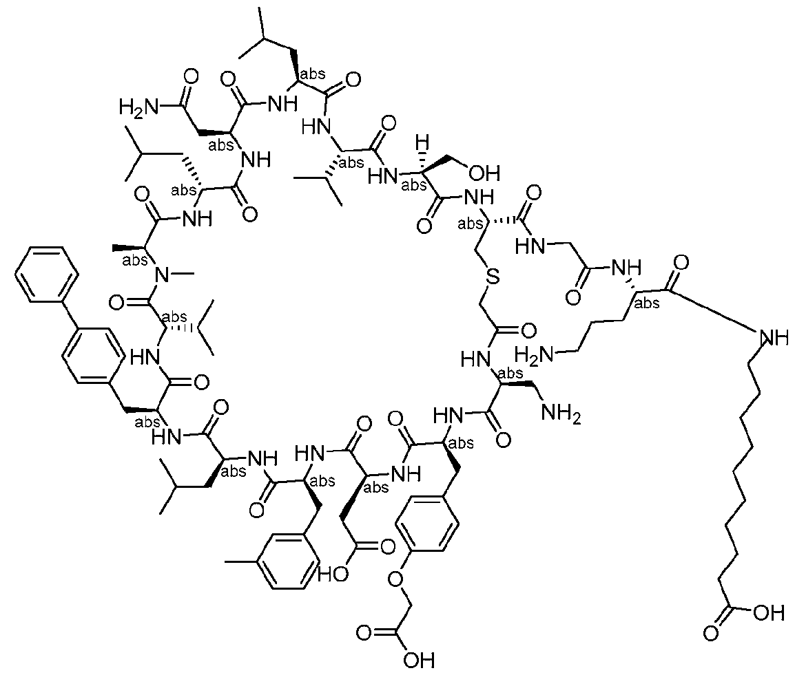 - C07K7/56—Cyclic peptides containing at least one abnormal peptide link with at least one abnormal peptide link in the ring the cyclisation not occurring through 2,4-diamino-butanoic acid