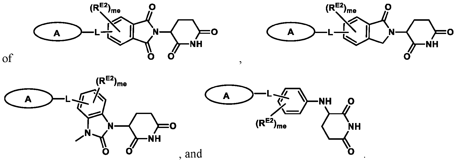 - the disclosure features A compound of formula (I), wherein LBM is a ligase binding moiety; L is a bivalent moiety that connects Ring A to LBM; and Ring A has formula (I-a), formula (I-b), or formula (I-c): wherein: each of X 1 and X 11 is independently selected from the group consisting of O, S, and NR 2 ; each of Y 1 and Y 3 is independently selected from the group consisting of a bond, CR 1 , CR 1a , C(R 3 )2, N, and NR 2 ; provided that only one of Y 1 and Y 3 can be a bond; each of Y 2 and Y 4 is independently selected from the group consisting of CR 1 , CR 1a , C(R 3 )2, N, and NR 2 ; each of Y 11 and Y 33 is selected from the group consisting of a bond, CR 1b , C(R 3 ) 2 , N, and NR 2 ;