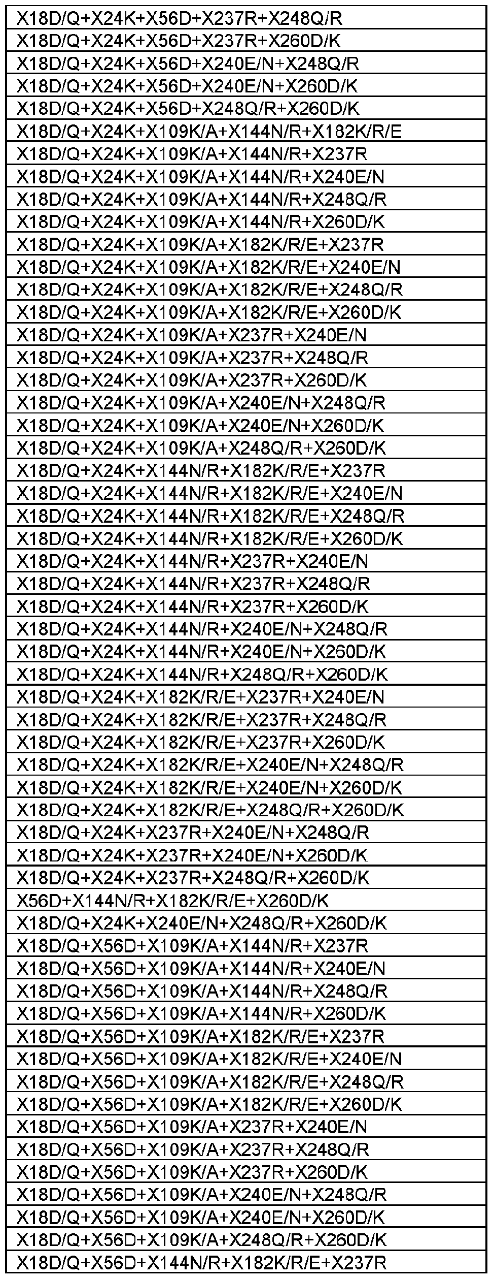 - Variants comprising multiple substitutions are separated by “+”, e.g., “Arg170Tyr+Gly195Glu”, “R170Y+G195E” or “X170Y+X195E” representing a substitution of arginine and glycine at positions 170 and 195 with tyrosine and glutamic acid, respectively.