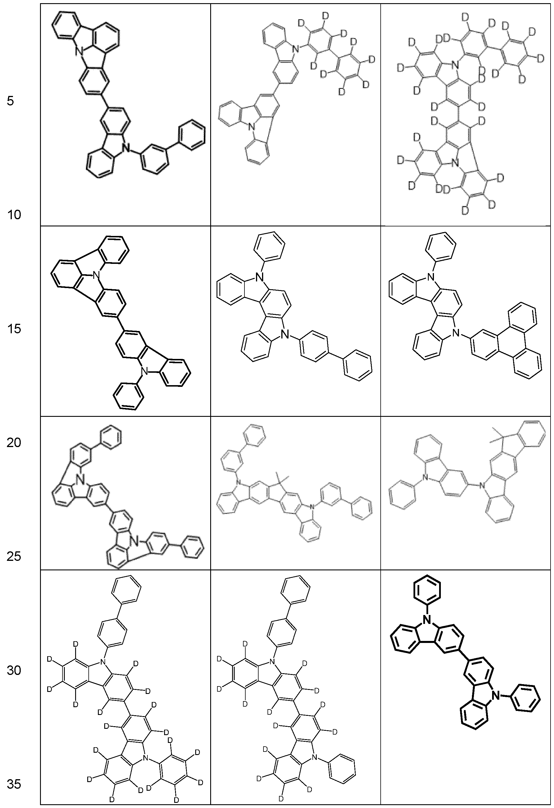 - the present invention relates to 4/7-naphtho[1,2,3,4-ctef]carbazoles, mixtures and formulations containing them and electronic devices containing these compounds, in particular organic electroluminescent devices containing these compounds as matrix materials, electron transport materials or hole blocking materials.