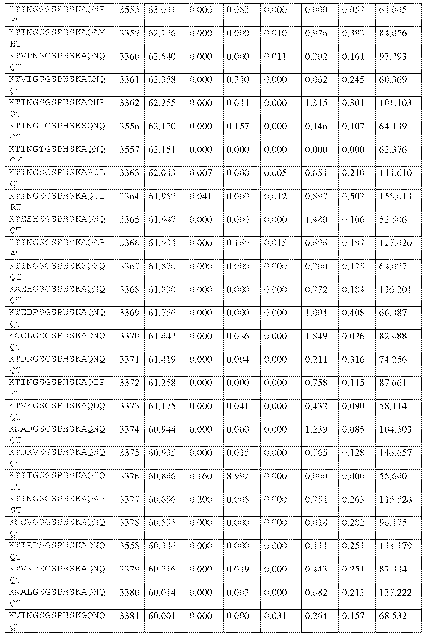 - the amino acid sequence of SPHSKA (SEQ ID NO: 941) is present immediately subsequent to an amino acid position corresponding to position 455 of SEQ ID NO: 36 or SEQ ID NO: 4.