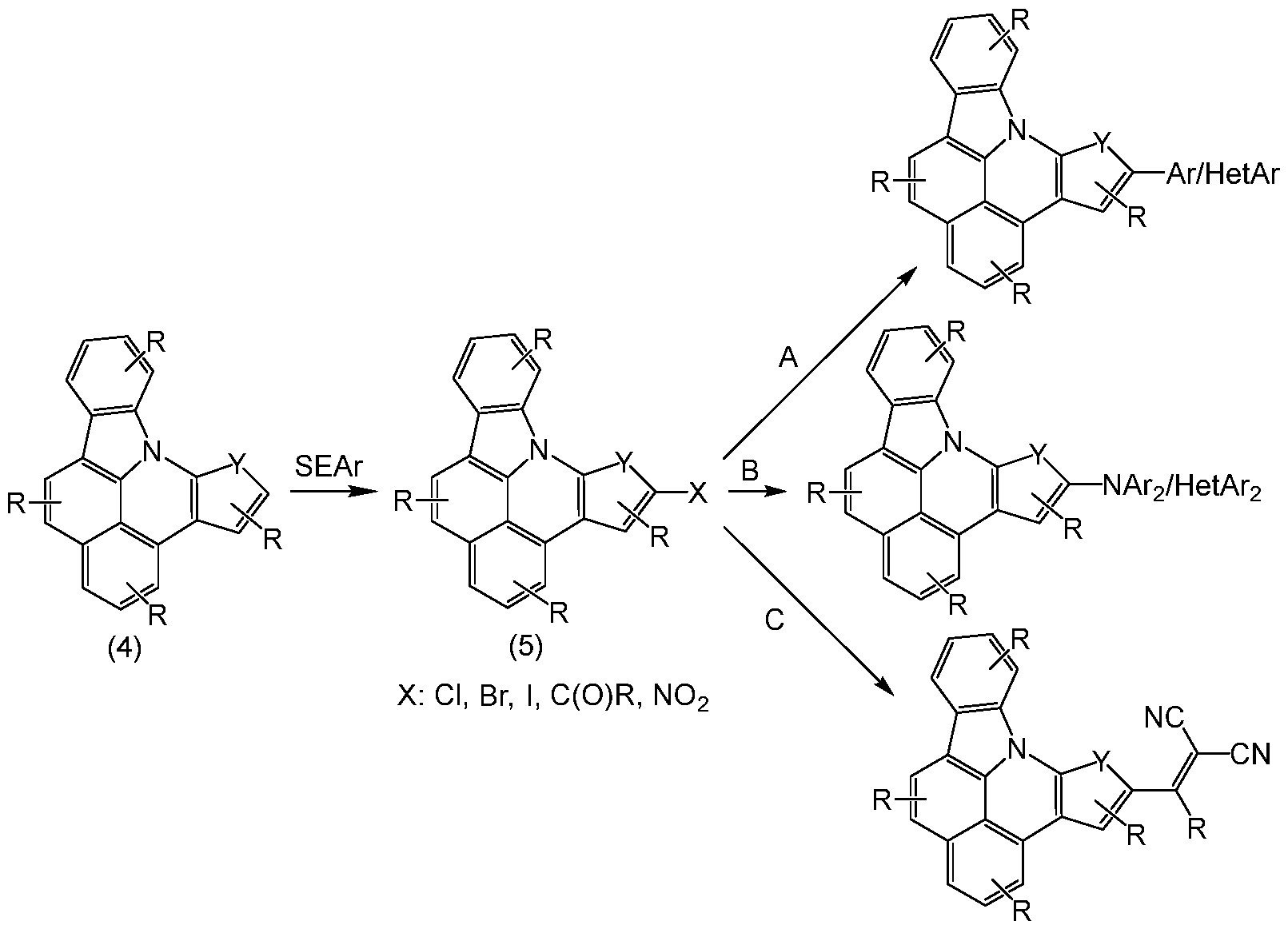 | CAO XUDONG ET AL: "CN-Containing donor-acceptor-type small-molecule materials for thermally activated delayed fluorescence OLEDs", JOURNAL OF MATERIALS CHEMISTRY C, vol. 5, no. 31, 1 January 2017 (2017-01-01), GB, pages 7699 - 7714, XP093197812, ISSN: 2050-7526, DOI: 10.1039/C7TC02481A * |