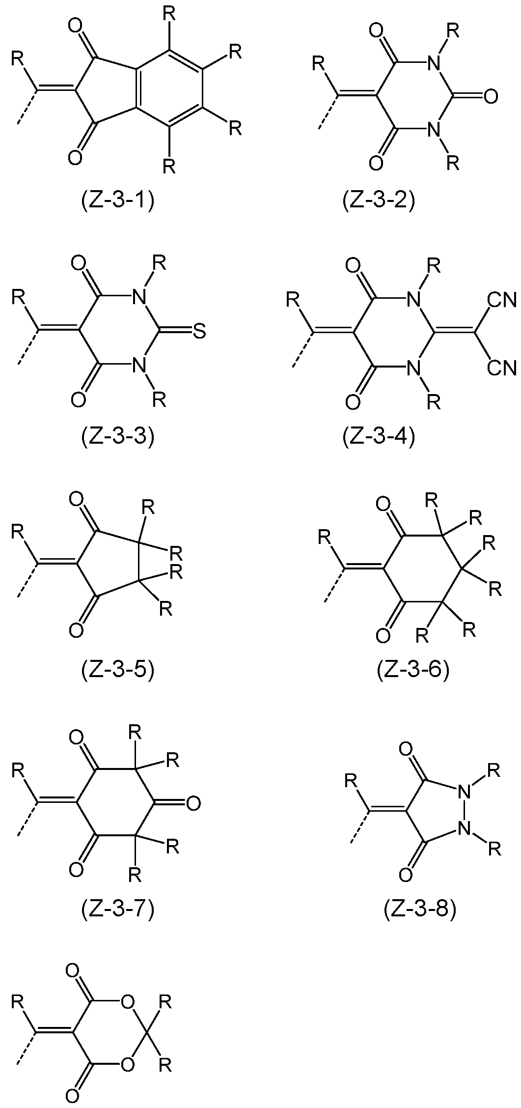 - Z is an electron acceptor group; Z can also form a ring system with R c ;