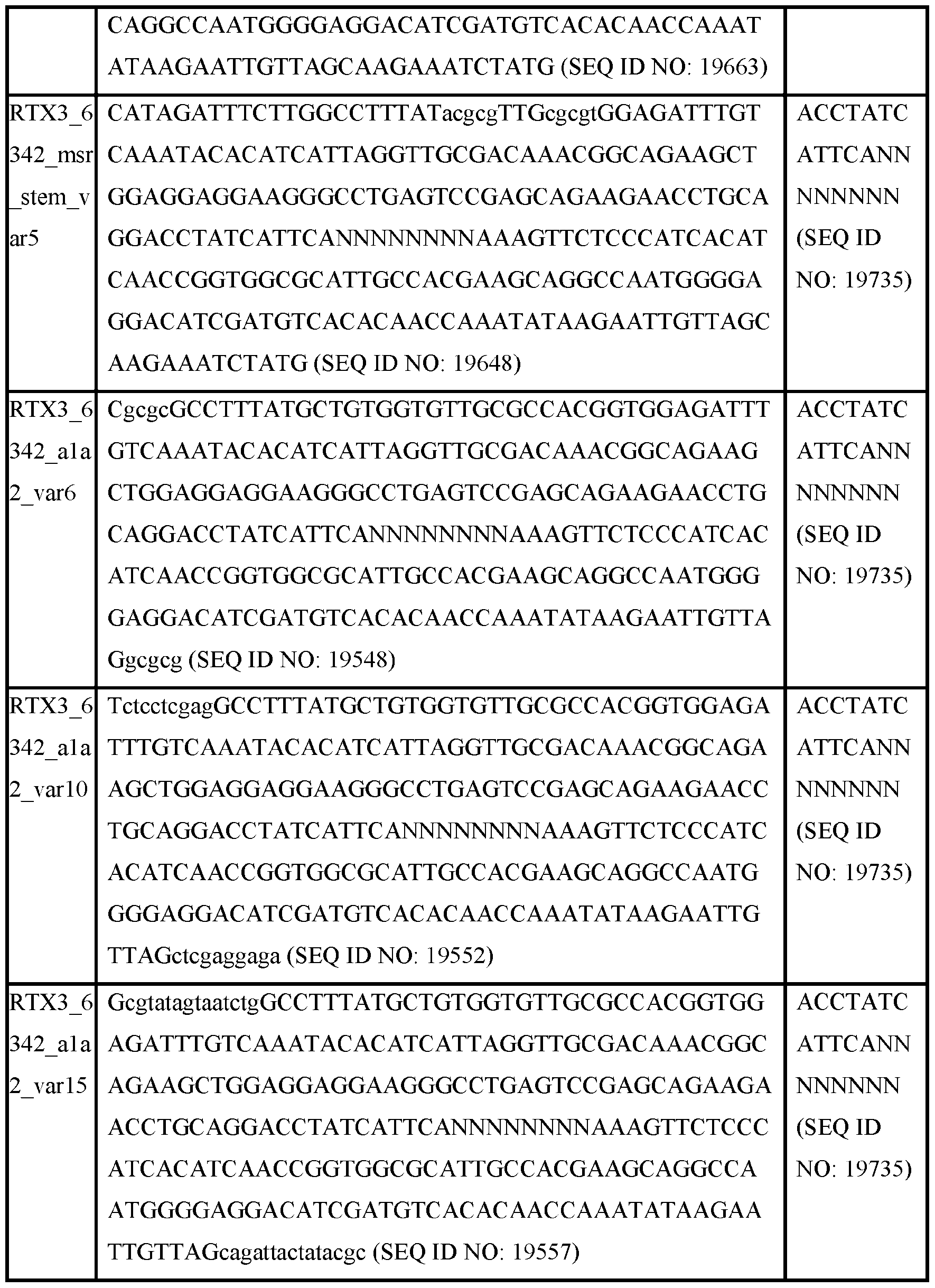 RNG043-WO1 PCT Application RTX3_6 AacgcgaaacgctggGCCTTTATGCTGTGGTGTTGCGCCACGGTG ACCTATC 342 a1a GAGATTTGTCAAATACACATCATTAGGTTGCGACAAACGG ATTCANN ) C N ) C N ) C N ) C N )