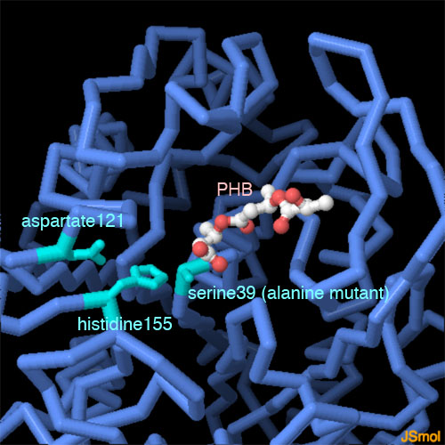 - 2d81: T Hisano, K Kasuya, Y Tezuka, N Ishii, T Kobayashi, M Shiraki, E Oroudjev, H Hansma, T Iwata, Y Doi, T Saito & K Miki (2006) The crystal structure of polyhydroxybutyrate depolymerase from Penicillium funiculosum provides insights into the recognition and degradation of biopolyesters. Journal of Molecular Biology 356, 993-1004.