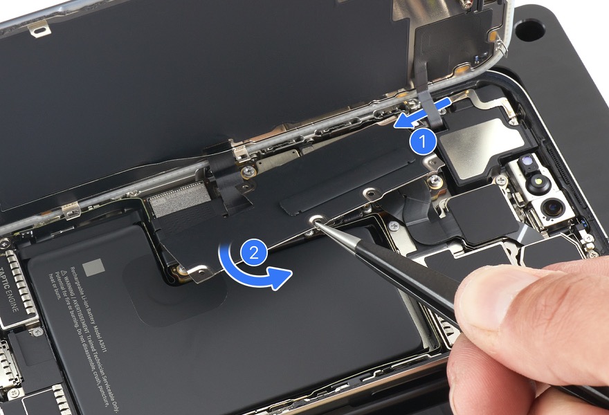• Caution: Don’t touch the TrueDepth camera assembly, grounding springs, or speaker grille foams.