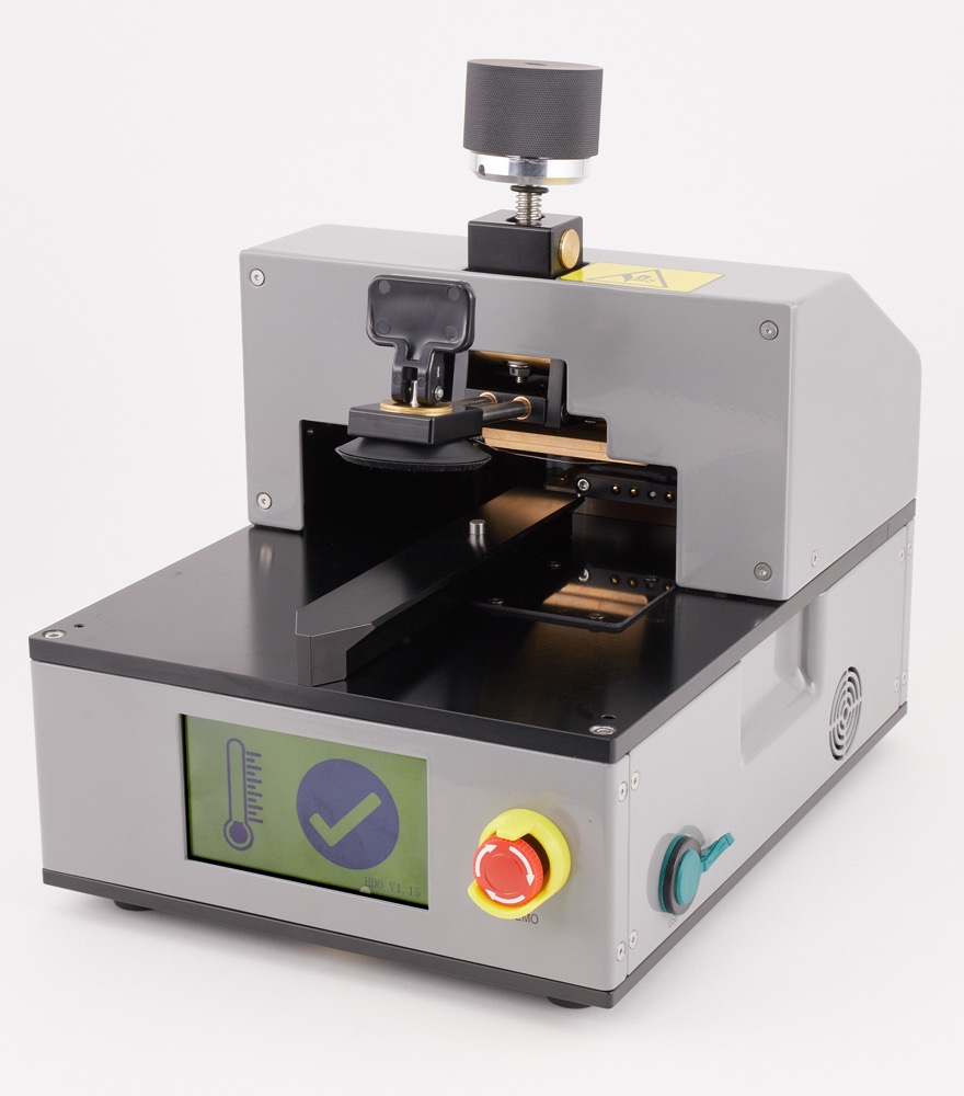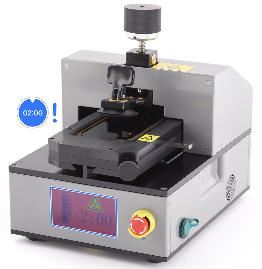 3. Flip the switch on the back of the heated display removal fixture to turn it on. The internal fan will turn on. Wait for a checkmark to appear on the screen.