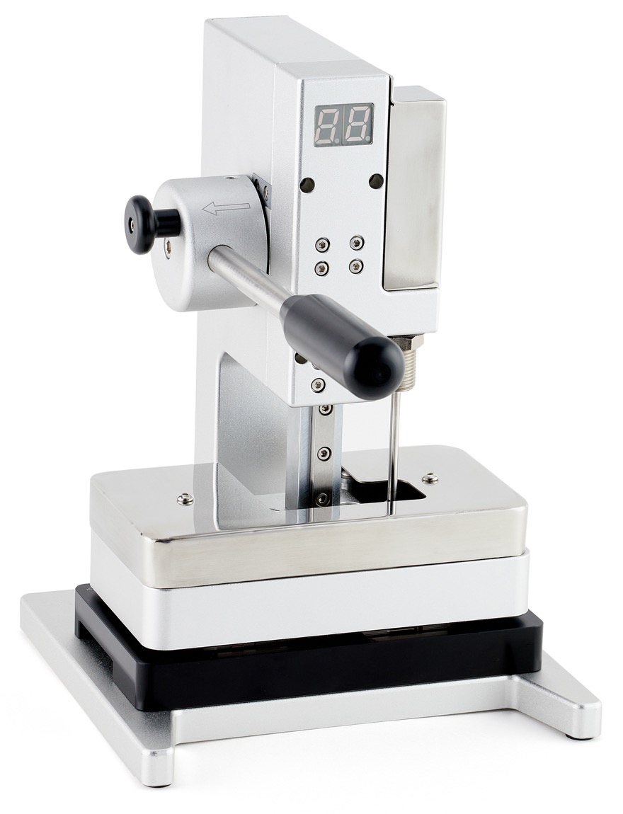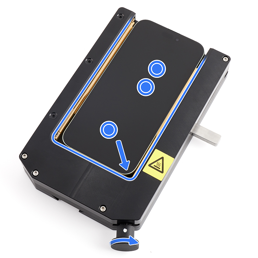24. Position the repair tray with the iPhone in the display press. Pull down the lever until the display press locks.