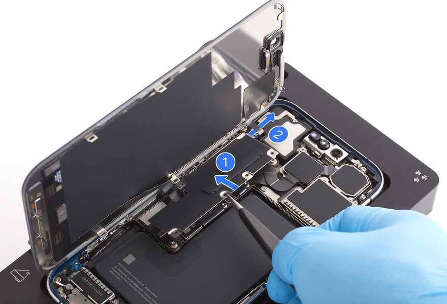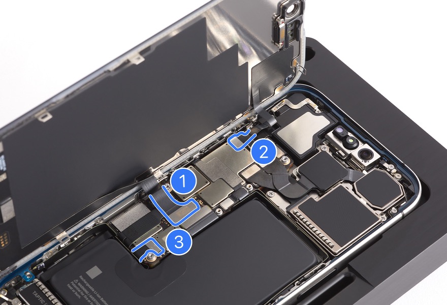 • Caution: You must disconnect the battery flex cable first to ensure that the iPhone remains turned off.