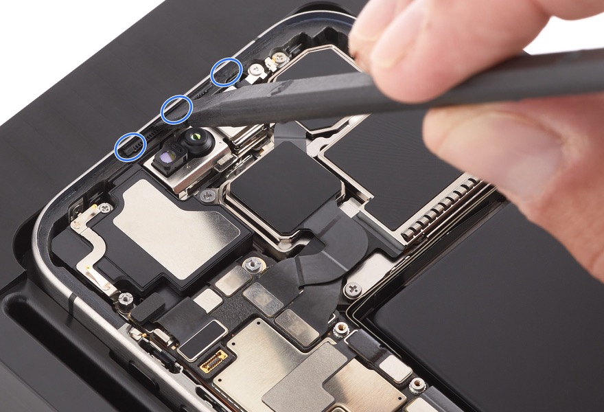 • To avoid damaging the lenses, don't touch the TrueDepth camera assembly or nearby parts.