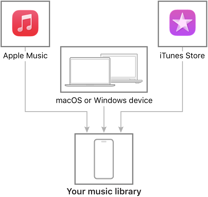 Enjoy music stored on iPhone as well as music streamed over the internet. You can build a music library—your collection of songs and albums—in many ways.