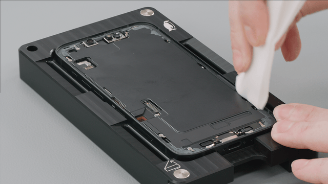 • Don’t touch the TrueDepth camera assembly while adhering the display adhesive.