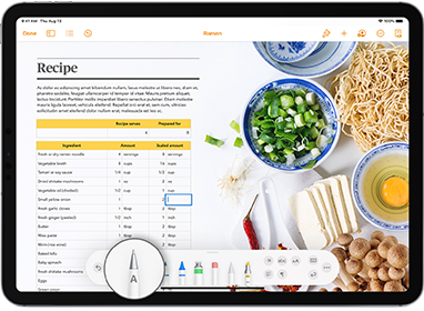 Convierte lo que escribes a mano en texto con el Apple Pencil, agrega anotaciones y dibuja en un documento de Pages.