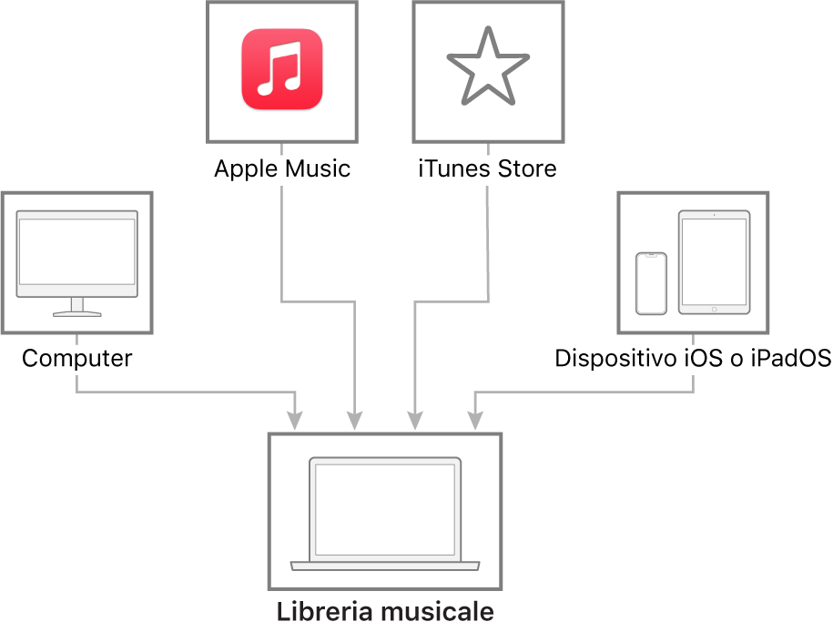 Se non ti abboni ad Apple Music e vuoi aggiungere i tuoi brani o album preferiti, puoi acquistare e scaricare musica da iTunes Store. Se in precedenza hai acquistato dei contenuti da iTunes Store puoi scaricarli sui tuoi dispositivi e computer autorizzati (fino a un totale di 10).