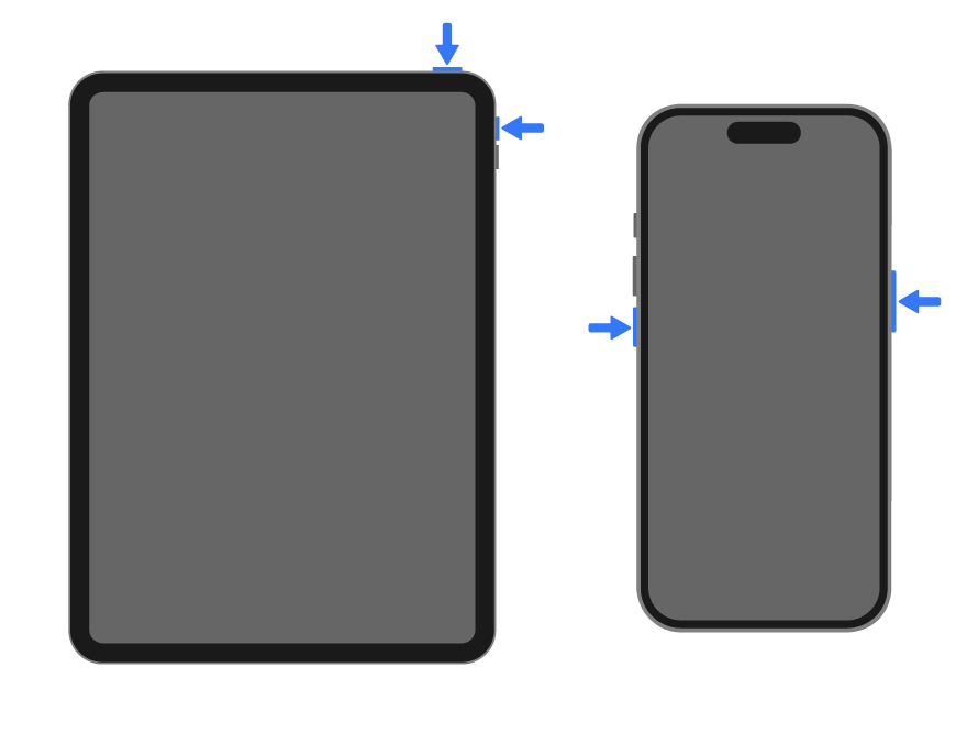 Houd tegelijkertijd de zijknop (op een iPhone) of de knop op de bovenkant (op een iPad) en een van de volumeknoppen ingedrukt totdat de schuifregelaars verschijnen. Versleep vervolgens de schuifknop 'Zet uit'.