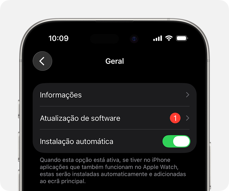 Deixe o Apple Watch no carregador enquanto a atualização estiver a decorrer. Não reinicie o iPhone ou o Apple Watch e não saia da app Apple Watch. Quando a atualização estiver concluída, o Apple Watch irá reiniciar sozinho.