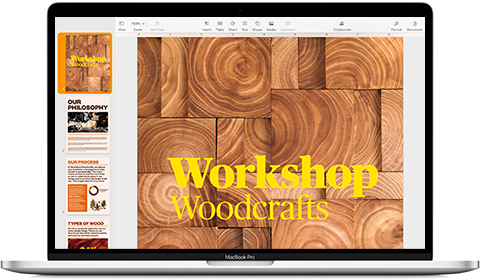 Crie ou edite documentos num navegador com o Pages para iCloud.