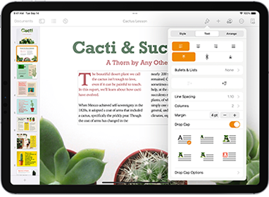 Escolha um tipo de documento, ajuste o tamanho e as margens das páginas, altere o aspeto do texto e muito mais.
