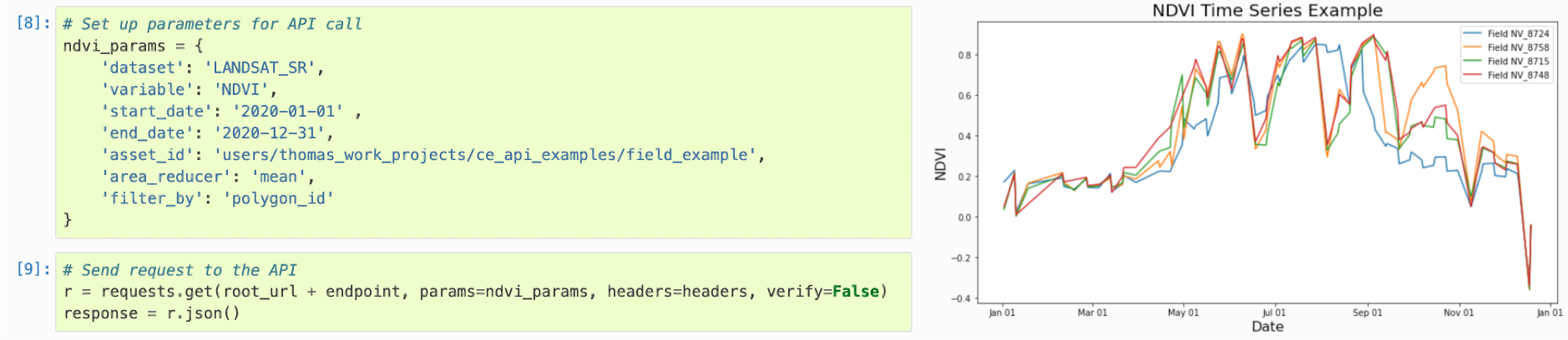 The Climate Engine API is a powerful way to scale up your analysis. Essentially, the API is a programmatic interface to all of the same analytical capabilities that are available in the Climate Engine tool, allowing you to run your analysis iteratively and consistently.