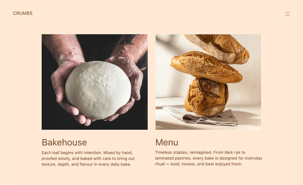 Crea una web acogedora para mi panadería artesanal, con un encanto rústico, en tonos crema y dorados y una elegante tipografía serif.
