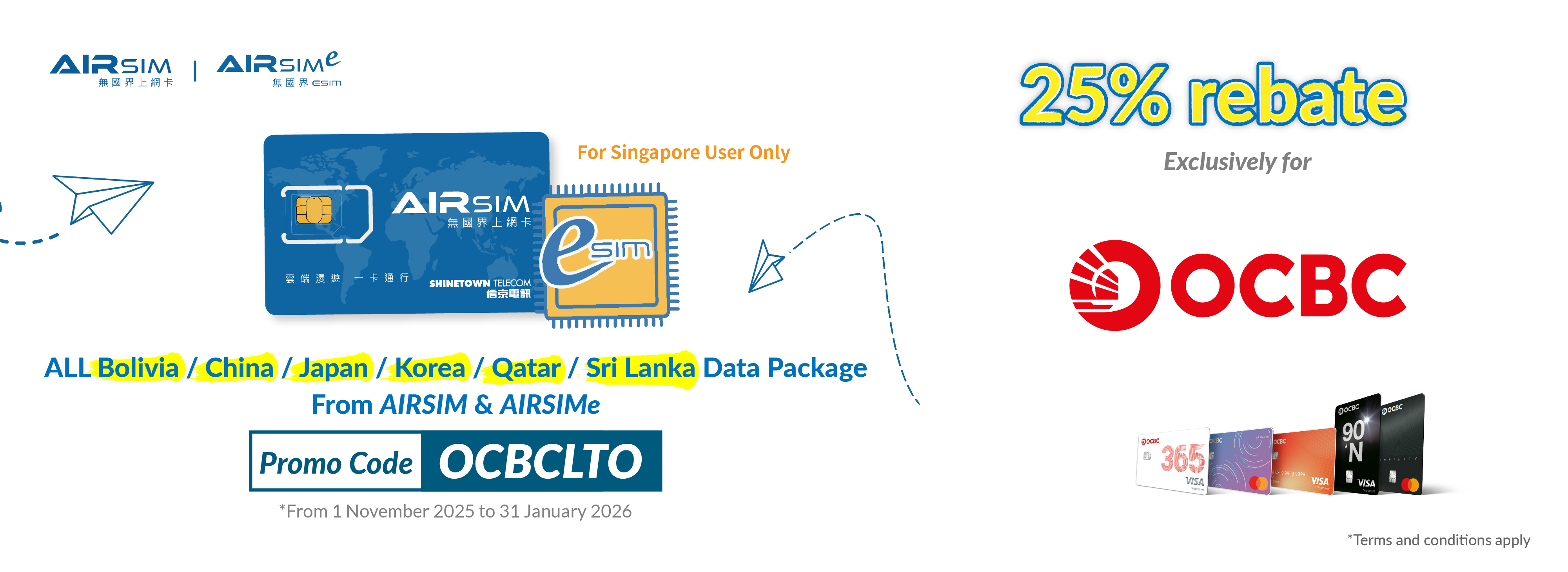 No more queuing and hunting for local SIM card in overseas. Simply purchase data plan through AIRSIM APP or web before travelling.