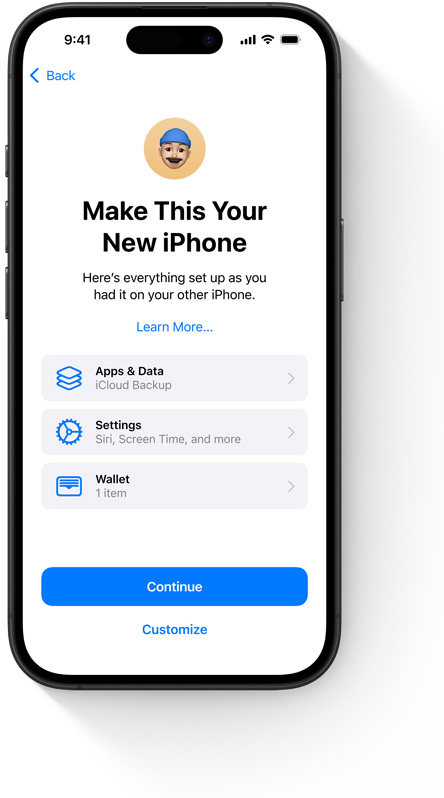 Restore your device or set up a new one from your iCloud backup to seamlessly bring along all your photos, files, contacts, apps, settings, and more, so it looks just like your previous one.