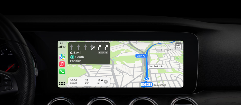CarPlay brings the power and simplicity of Maps behind the wheel. It can make intelligent suggestions based on data you already store on your device, like addresses from your email, text messages, contacts, and calendars. And with a detailed map, turn‑by‑turn spoken directions, and immersive 3D experiences, it’s easier than ever to get where you need to go.