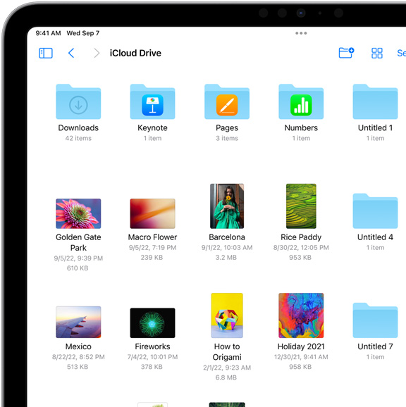 iCloud Drive ułatwia przeglądanie i udostępnianie zachowanych plików i folderów z każdego urządzenia, którego akurat używasz. Masz dostęp do wszystkich swoich danych, korzystając z aplikacji Pliki w systemie iOS i iPadOS, funkcji Finder na Macu, eksploratora plików na pecetach z systemem Windows lub strony iCloud.com.