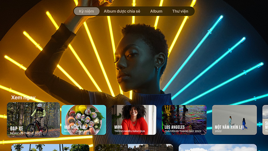 Ảnh.Thư Viện Ảnh Được Chia Sẻ iCloud giúp cả gia đình dễ dàng chiêm ngưỡng các bức ảnh của nhau và bạn có thể xem ảnh ngay trên TV. Bạn cũng có thể chọn Kỷ Niệm làm trình bảo vệ màn hình và xem những khoảnh khắc đặc biệt của mình thật sống động trên màn hình lớn.