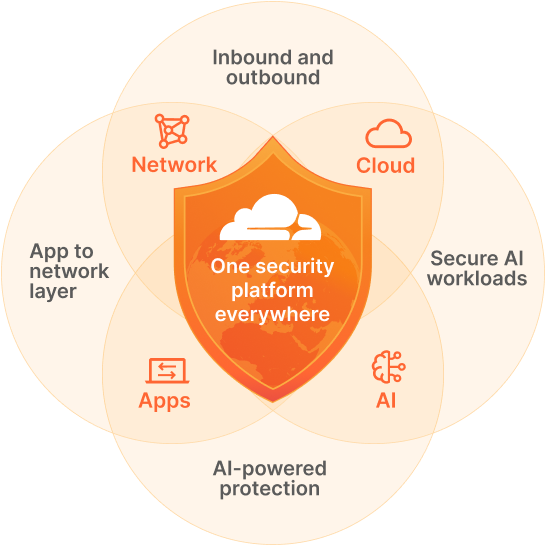 Cloudflare’s fully integrated AI-powered security solutions — application security, SASE/SSE and network security — secure both inbound and outbound traffic — across network, application, and user traffic.